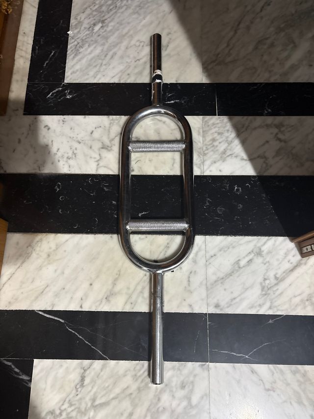 Barra de pesas con acabado cromado, ideal para entrenamientos.