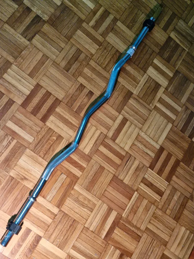 Detalles del productoBarra de pesas curva con acabado cromado.