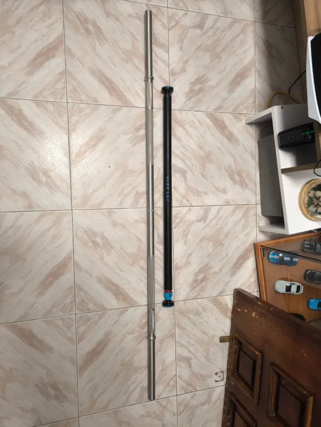 Barra de pesas y para hacer dominadas. Ideal para entrenar en casa. - Barra de pesas 155cm - Barra dominadas 70cm
