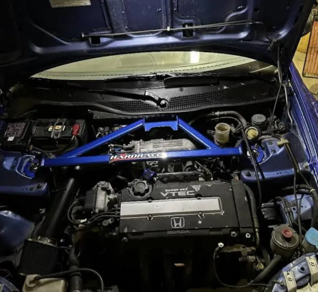 Barra de torretas para Honda Civic EG. Mejora la rigidez del chasis. - Fabricada en aluminio. - Color azul. - Marca Hardrace.