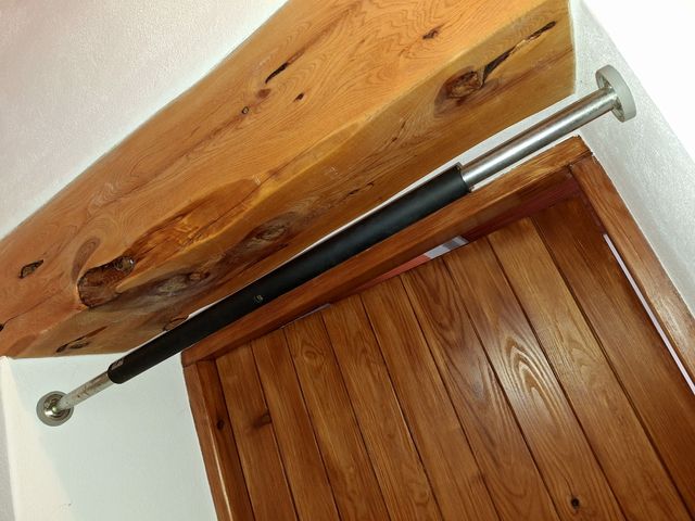 Detalles del productoBarra de dominadas extensible de la marca Domyos. Se instala a presion entre 2 paredes o en el marco de una puerta por ejemplo. El espacio minimo entre los 2 puntos de agarre tiene que ser de 62cm y maximo de 100cm. Está en buen estado y lista para usar.