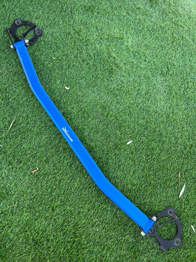 Detalles del productoBarra estabilizadora (strut bar) de color azul para Honda Civic, marca HardRace. Diseñada para mejorar la rigidez del chasis.