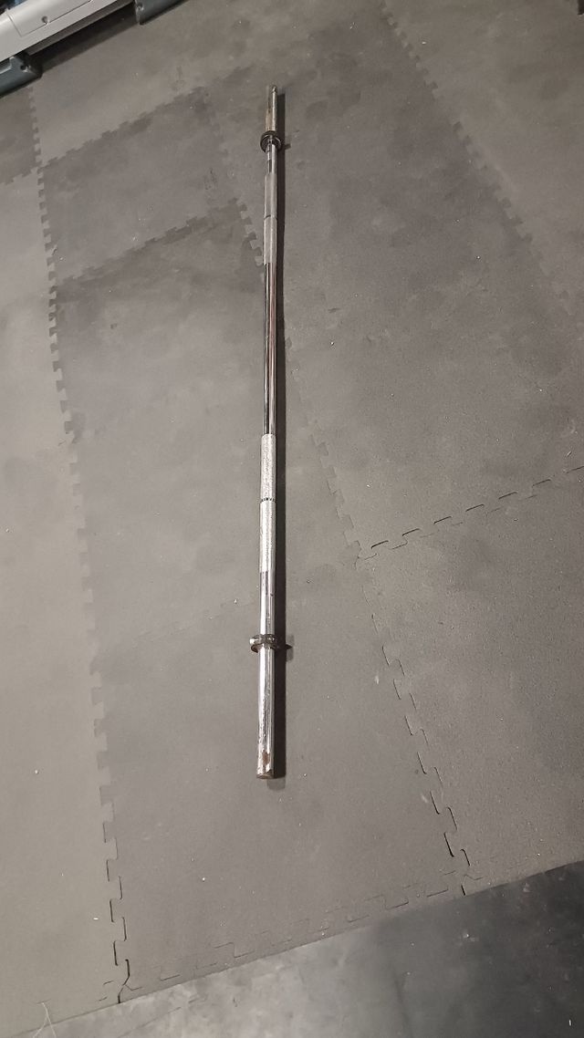 Detalles del productoBarra de halterofilia de 180cm en buen estado. Ideal para rack, sentadillas, peso muerto, longe o zancadas, press de pecho, press militar hombro, encogimiento trapecio, remo con barra etc, pesa 10 kg. Entrega en mano , precio no negociable