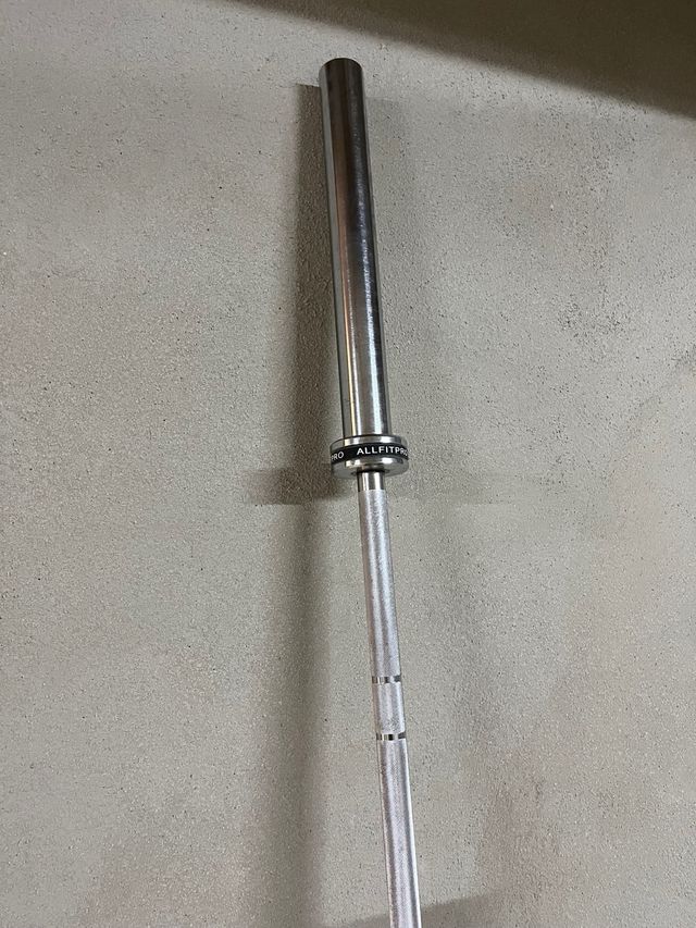 Barra olímpica de la marca ALLFIT PRO. - Peso: 20 kg - Diámetro: 28 mm - Capacidad: 1000 LB - Modelo: 4R