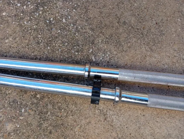 Barra olímpica de alta calidad con acabado cromado. - Material: Acero. - Diseño moleteado para un agarre seguro. - Compatible con discos olímpicos. 50€ la unidad