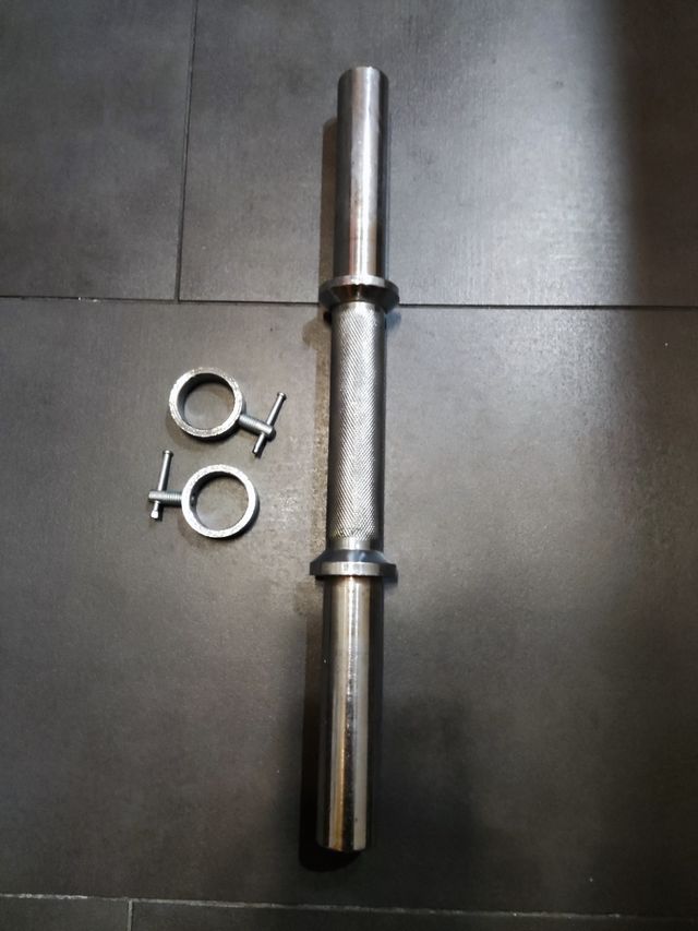 Barra estándar de 38cms de largo y 2.8cms de diámetro. Incluyo cierres
