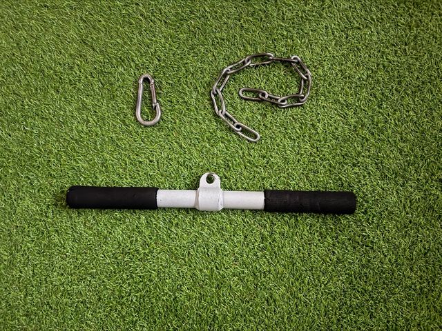 Detalles del productoAccesorio para máquinas de polea, ideal para entrenar tríceps, bíceps y dorsales.