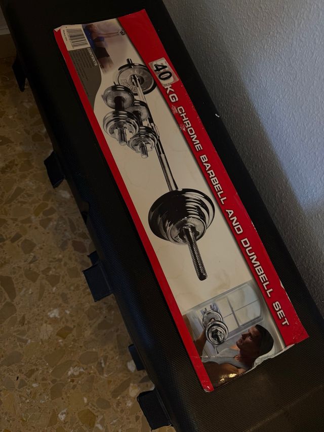 Detalles del producto2 Sets de pesas cromadas de 40 kg, ideal para entrenamientos en casa.