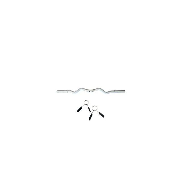 Detalles del productoBarra Z cromada para ejercicios de bíceps. Incluye dos fijaciones de muelle para asegurar los discos.Barra de dominadas cromada en forma de Z que coloca las muñecas en una posición más natural al entrenar bíceps o tríceps. Se suministra con un kit de bloqueo de muelle. Peso: 7 kg. Longitud: 120 cm. Diámetro: 30 mm