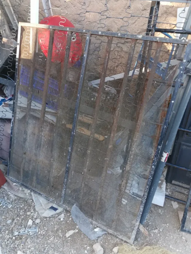 Barranquilla de ventana metálica. - Medidas: 115 cm de alto x 110 cm de ancho. - Estructura de metal con barras verticales y resortes.