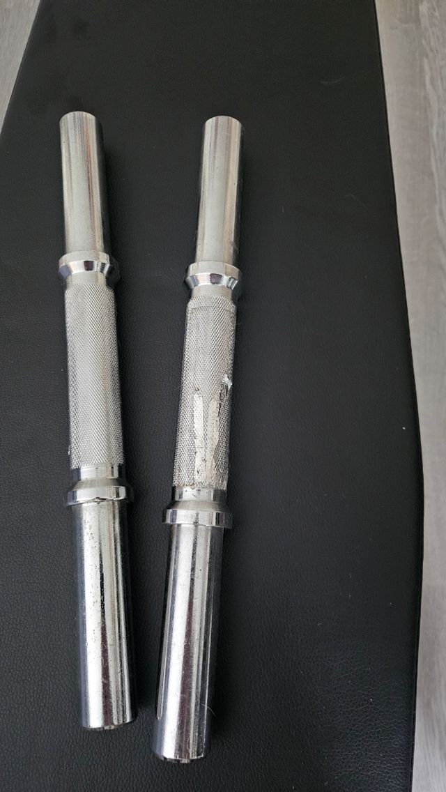 Detalles del productoDos barras de pesas cromadas con agarre moleteado para un mejor agarre.