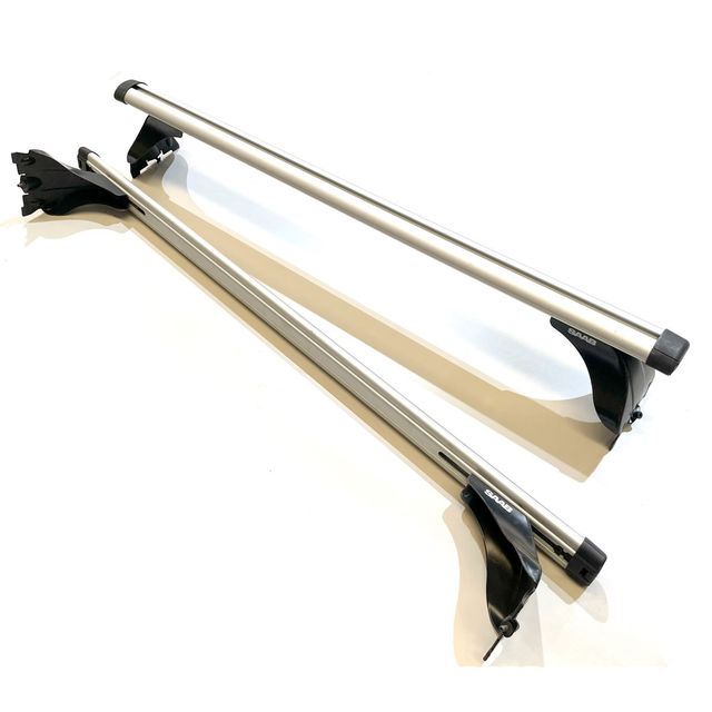 Detalles del productoJuego de barras de techo para Saab 9-3 Sport Hatch. No hace falta llevar las barras longitudinales, ya que estas que vendo anclan sobre los soportes originales . Fabricadas en aluminio por Thule para SAAB.