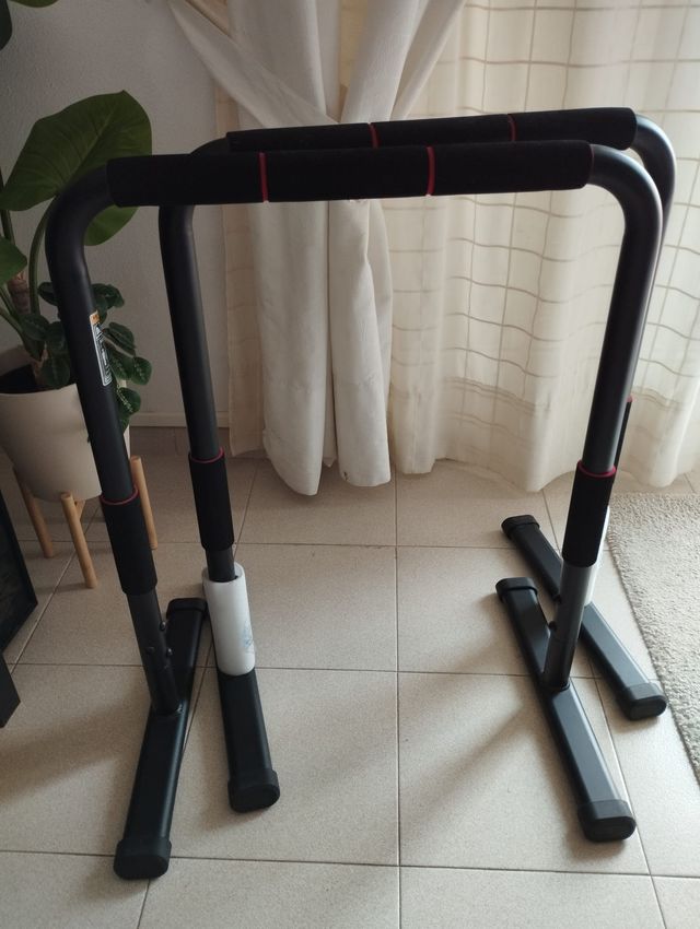 Equipo de gimnasia para entrenamiento en casa. - Estructura metálica resistente. - Mangos acolchados para mayor comodidad. - Base estable para mayor seguridad.