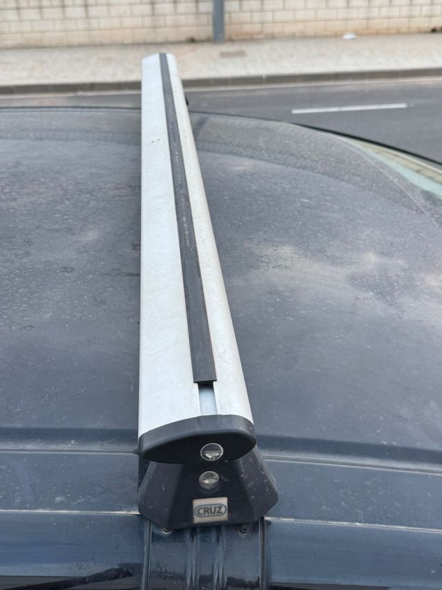 Detalles del productoVendo barras de techo para coche, marca Cruz. Son dos barras en buen estado, de aluminio y color plata con detalles negros.