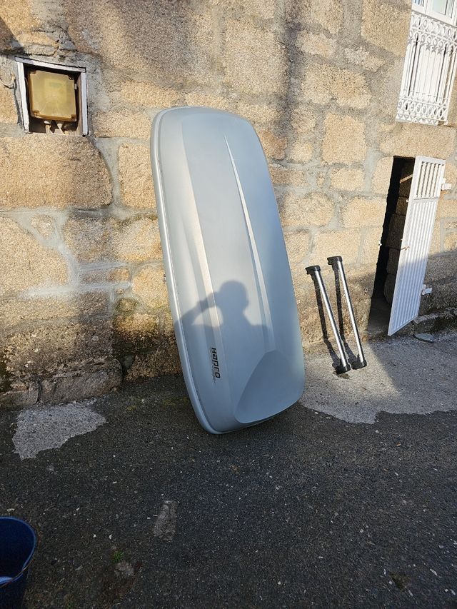 barras techo , originales Opel Astra Tourer del 2016. baúl o cofre marca Hapro Carver de 2,15 metros.Esta en Sarria(lugo)