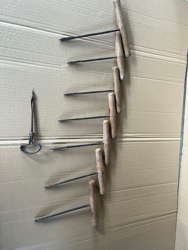 Detalles del productoJuego de barrenas de carpintero antiguas. Ideales para aficionados a la carpintería o coleccionistas. - Se incluyen 8 barrenas con mangos de madera. - Las barrenas presentan un aspecto antiguo y rústico. - Perfecto para proyectos de restauración o decoración.