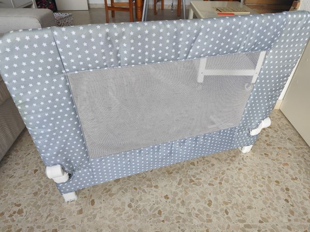 Detalles del productoBarrera de cama plegable con diseño de estrellas grises.