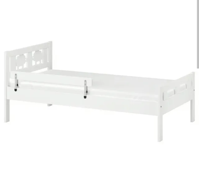 Barrera de seguridad para cama infantil modelo Kritter de Ikea. Color blanco. - Estructura de metal y plástico. - Diseño sencillo y funcional.