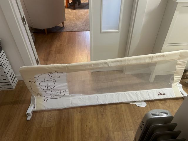 Detalles del productoBarrera de seguridad para cama de matrimonio, ideal para niños. Es plegable y fácil de instalar.