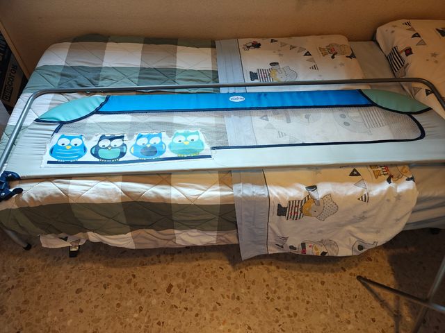 Detalles del productoBarandilla de cama infantil de la marca Olmitos, con diseño de búhos.