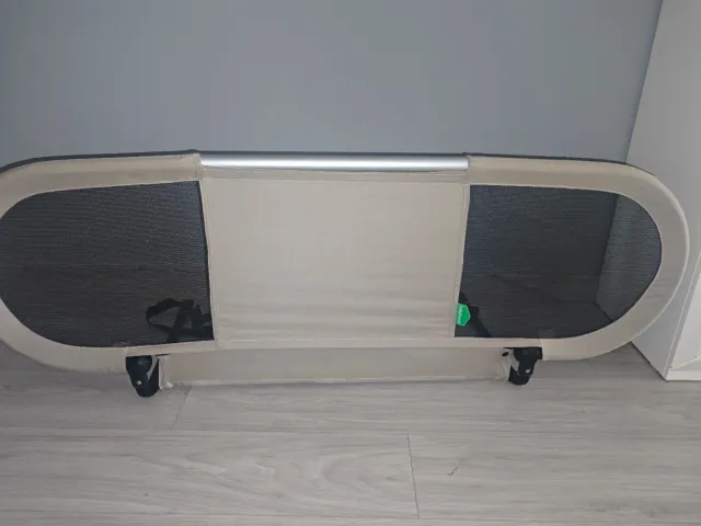 Detalles del productoBarrera de seguridad Babyhome para cama. Plegable, en muy buen estado y totalmente funcional. Ideal para evitar caídas durante el paso de cuna a cama. Sistema plegable que permite subir y bajar la barrera con facilidad, sin desmontar. Estructura resistente y estable, compatible con la mayoría de camas infantiles y camas estándar. Fácil de instalar y de guardar cuando no se usa. Limpia, bien cuidada y lista para usar. Color arena.