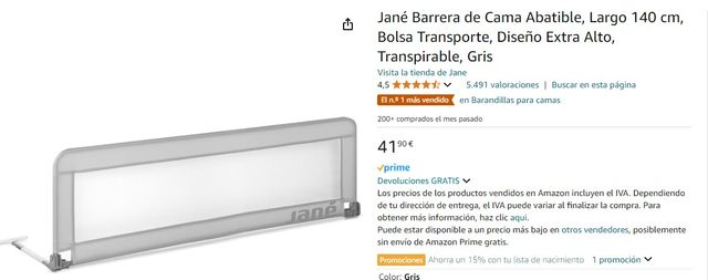 Barrera de cama 140 cm JANÉ NUEVA A ESTRENAR