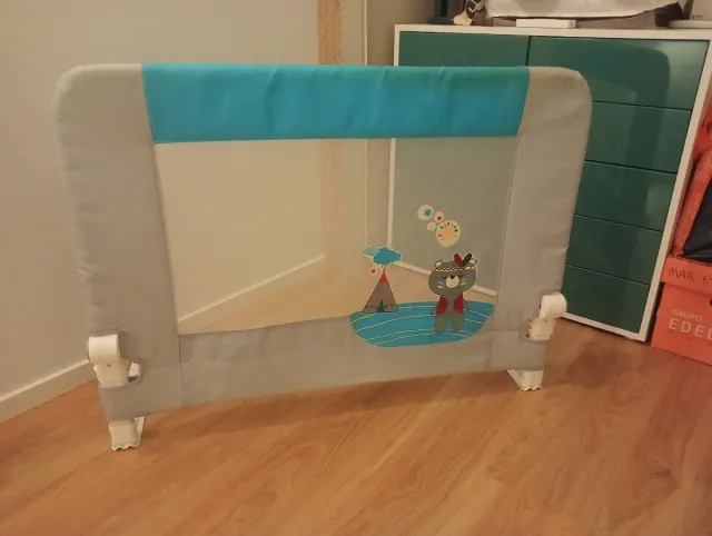Barrera de seguridad para cama de niños muy alta, 90 cm altura x 90 cm ancho Tenho 3 unidades, dos con borde azule y una con borde rosa.