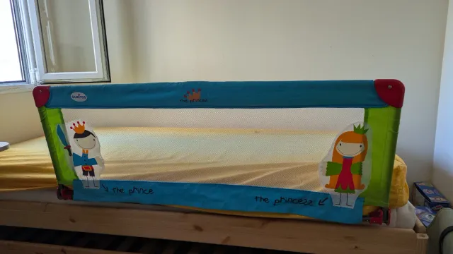 Detalles del productoBarrera de seguridad para cama infantil con diseño de cuento.