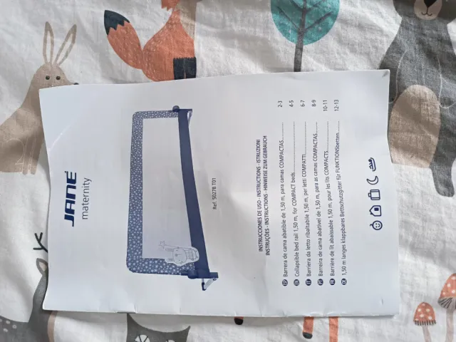 Detalles del productoBarrera de seguridad para cama de la marca Jane, modelo maternity. Es abatible y tiene una longitud de 1,50 metros.
