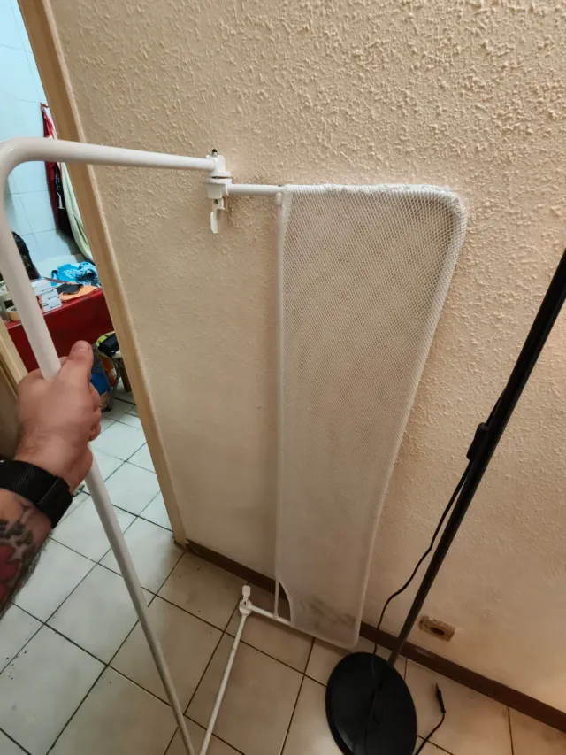 Barrera de seguridad para cama de bebé, ideal para evitar caídas durante el sueño. - Estructura de metal blanco. - Malla textil blanca. 140 largo 40 alto
