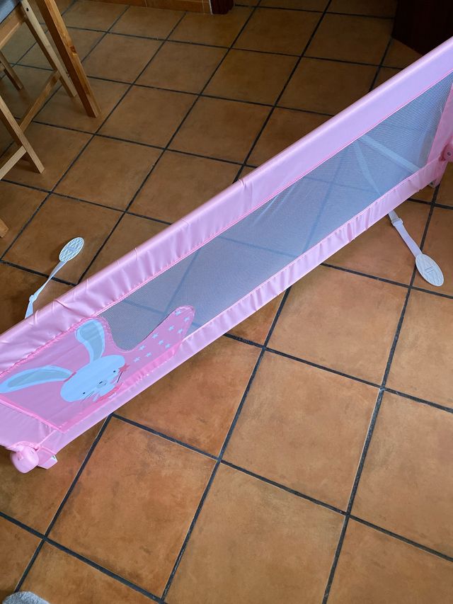 Barrera de seguridad para cama infantil con un tierno diseño. - Color rosa. - Dibujo de conejo. - Malla transpirable. - asalvo baby