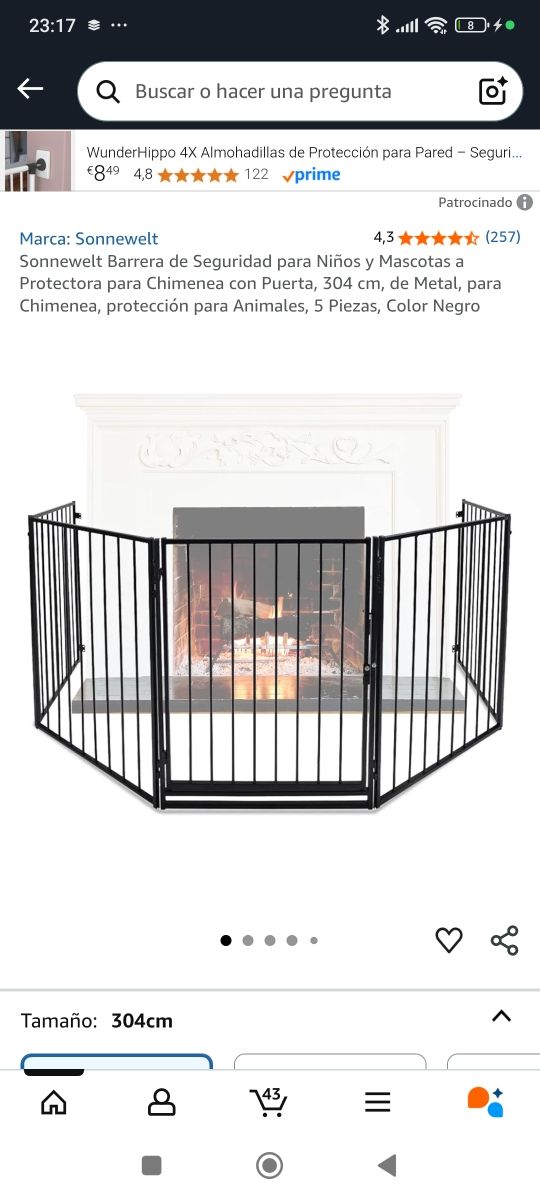 Detalles del productoBarrera de seguridad para chimenea, escalera... Es de color negro y mide 304cm.
