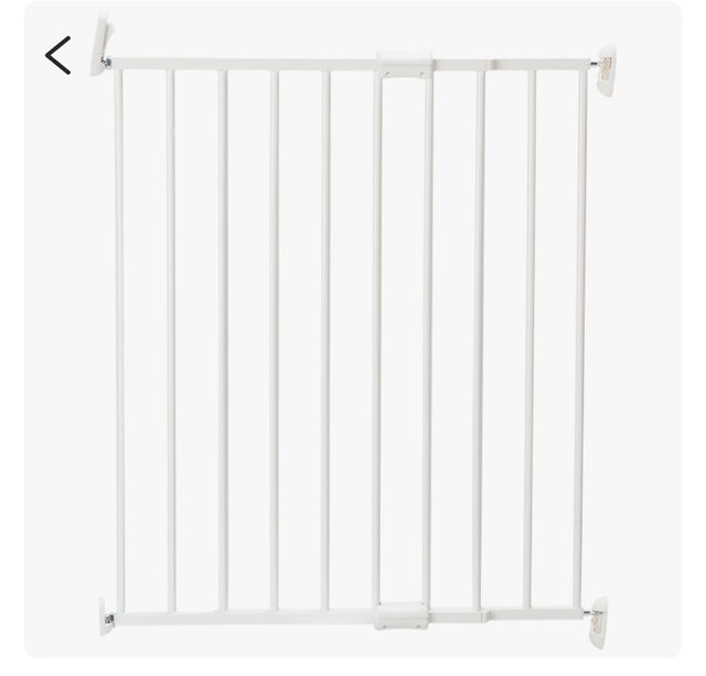 Detalles del productoBarrera de seguridad metálica blanca, ideal para mantener espacios seguros. Su diseño ajustable permite adaptarla a diferentes anchos.
