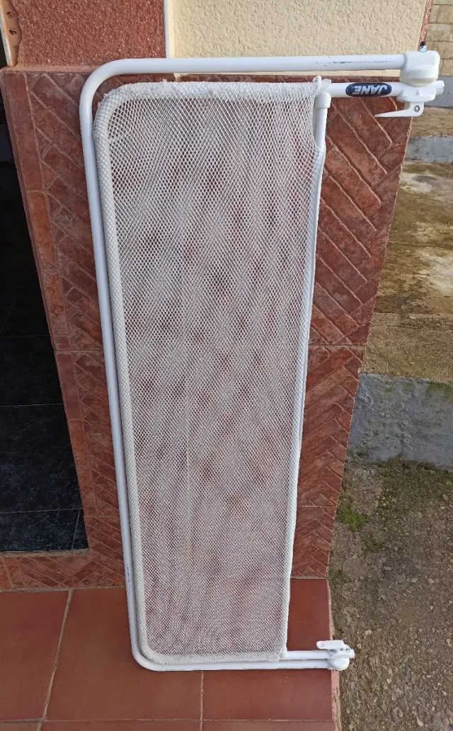 Detalles del productoBarrera de seguridad para bebés de la marca Jane. Fabricada en metal blanco con malla.