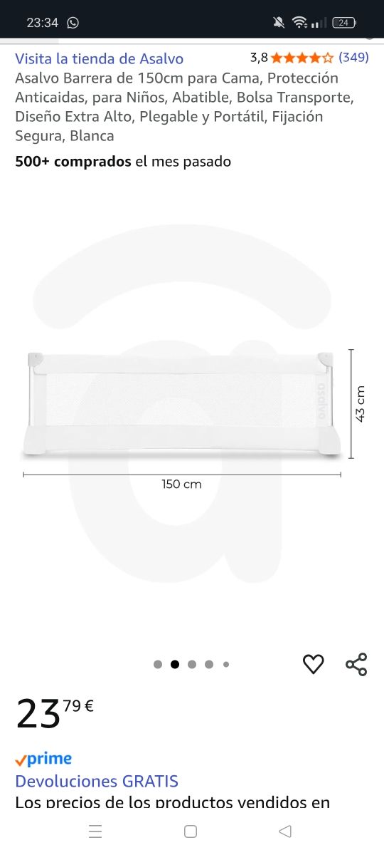 Barrera de seguridad de la marca Asalvo, ideal para camas. - Color blanco. - Medida de 150 cm de largo. - Altura de 43 cm.