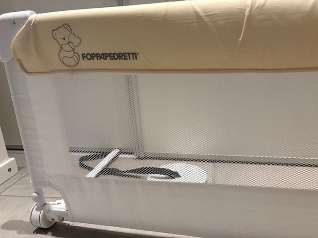 Detalles del productoBarrera de seguridad para niños de la marca Foppapedretti. Fácil de instalar.