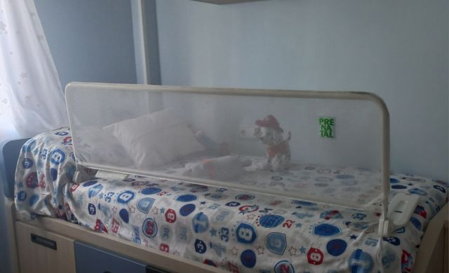Barrera de seguridad para cama, ideal para evitar caídas. Medidas: 150cm x 40cm - Fabricado en malla transpirable. - Estructura metálica.
