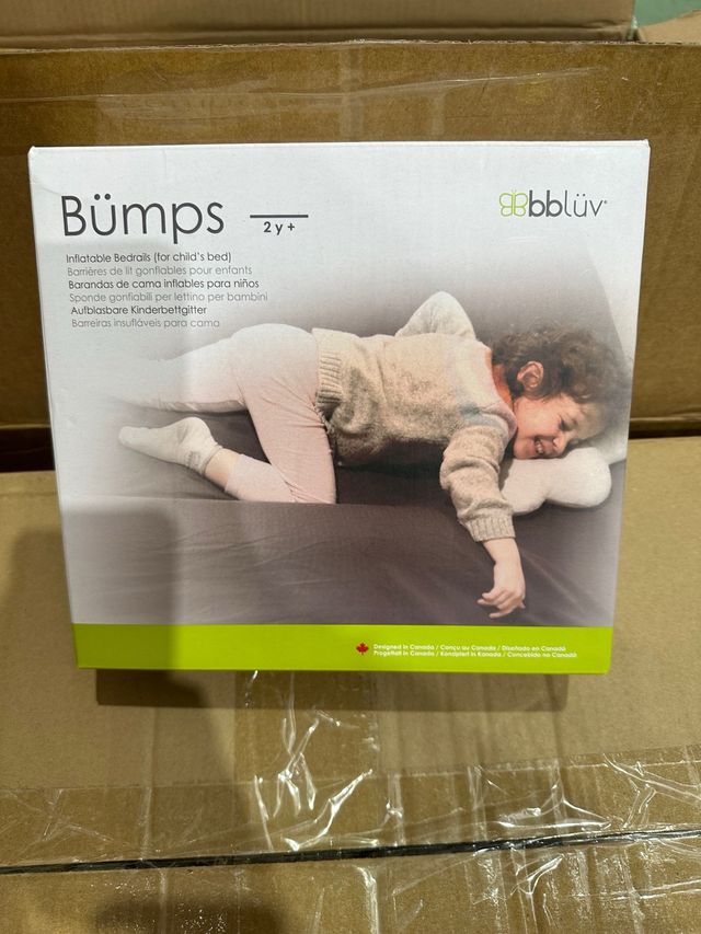 Barrera inflable para cama de niño o niña, marca Bumps. - Diseñada para camas infantiles. - Edad recomendada: 2 años en adelante.