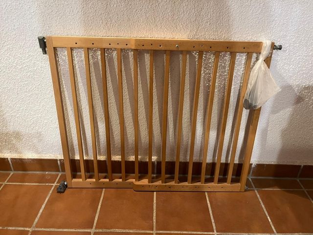 Barrera de seguridad para bebés, mascotas, fabricada en madera. Ideal para mantener a los más pequeños seguros en casa.