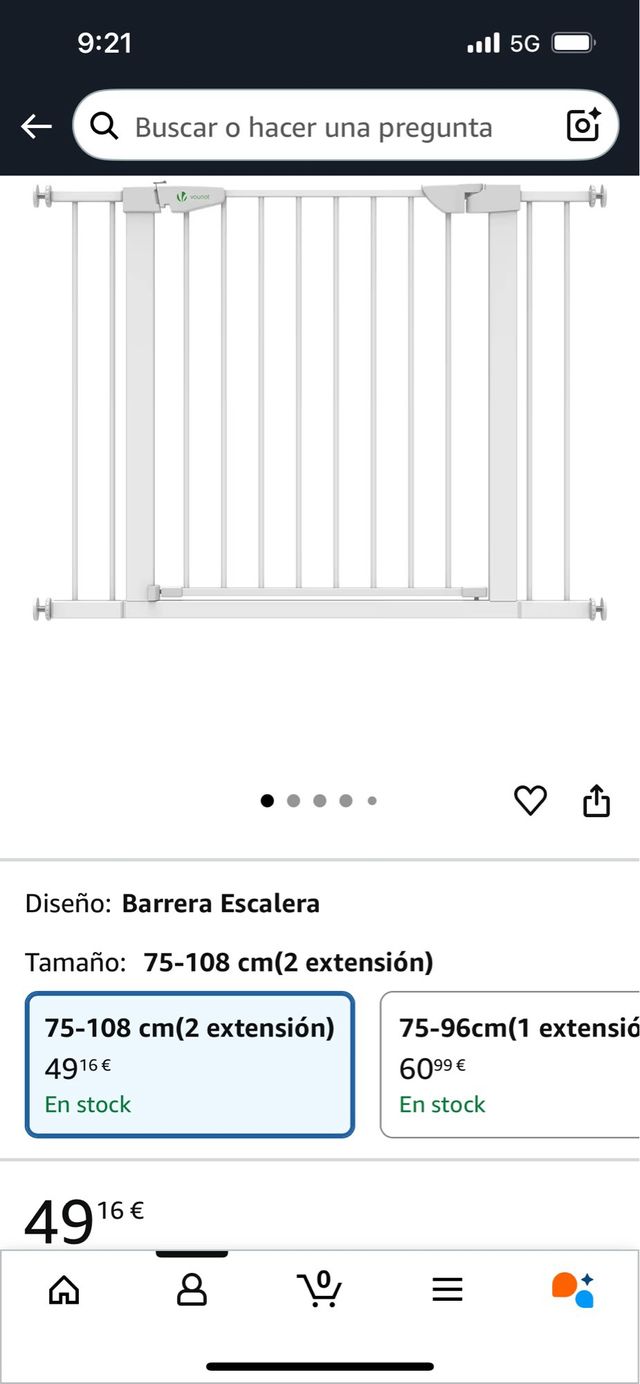 Barrera de seguridad para escaleras o pasillos. Se adapta a anchos de 75 a 108 cm. - Color blanco. - Incluye 2 extensiones. - Fácil instalación.