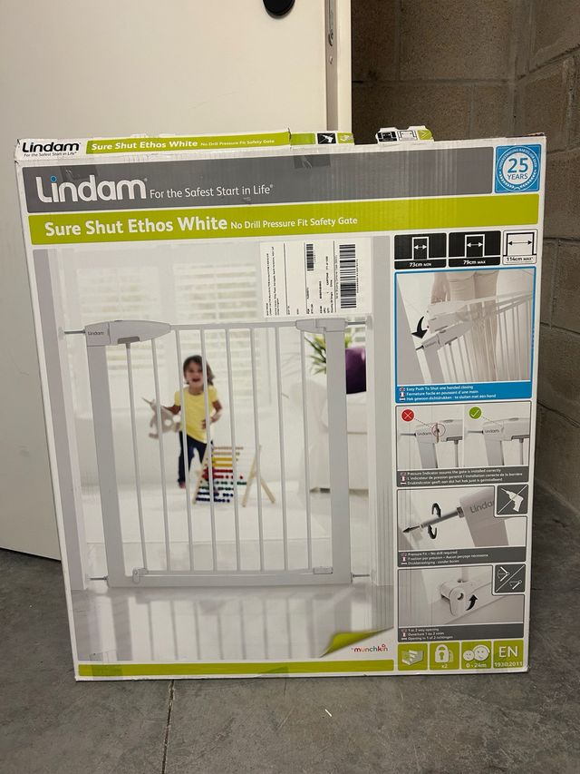 Barrera de seguridad para impedir paso de niños, bebés y/o mascotas. Para huecos de máximo 114cm. Sin estrenar.