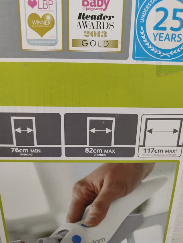 Detalles del productoPreciosa barrera de seguridad Lindam EasyFit Plus Deluxe, prácticamente nueva. Ideal para la seguridad del hogar.