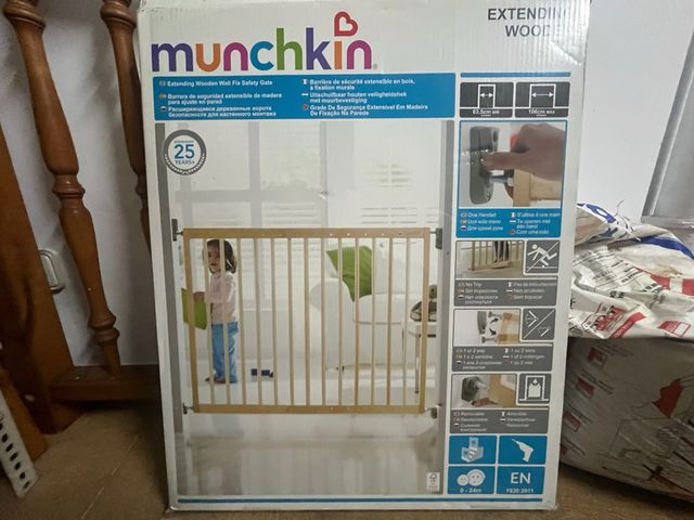 Detalles del productoPreciosa barrera de seguridad para niños de madera extensible de la marca Munchkin. Se adapta a aberturas de 63.5cm a 106cm.