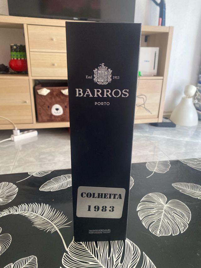 Caja de vino Barros Porto Colheita de 1983. - Presentación en caja. - Etiqueta Colheita 1983. - Talento Portugués - Portuguese Talent en la caja.