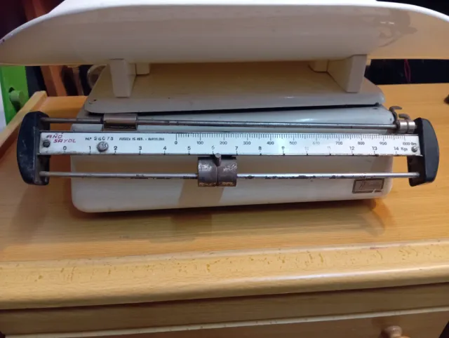 Báscula antigua para bebés de la marca Sayol. - Modelo: N° 26073 - Fabricada en Barcelona - Capacidad máxima: 14 Kg