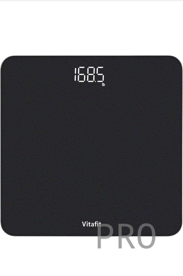 Vitafit Báscula de Baño Digital, Profesional del Pesaje Desde 2001, Peso Corporal con Pantalla LED clara y Step-On, 3*Pilas AAA Incluidas, Spray Plata Negro