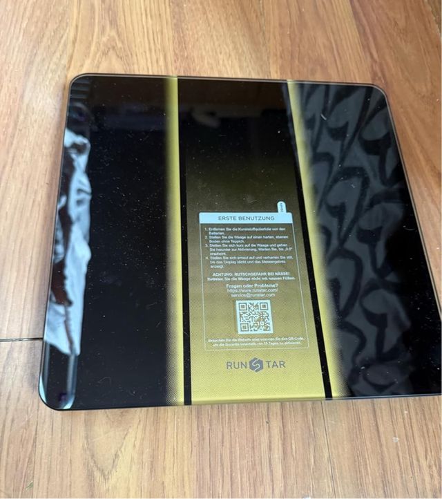 Detalles del productoBáscula de baño digital RunStar con superficie de cristal.