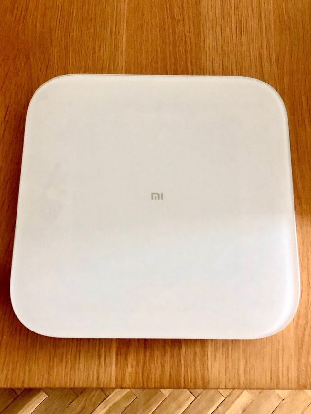 Báscula de baño con un diseño moderno y minimalista. - Superficie blanca. - Logo de la marca visible.