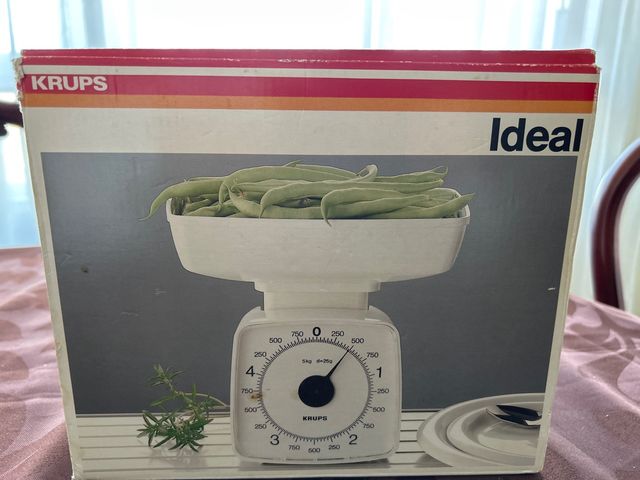 Báscula de cocina Krups modelo Ideal. Un clásico para tu cocina. Nunca se usó - Diseño vintage. - Plato blanco. - Indicador analógico.