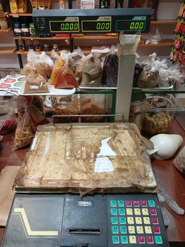 Báscula DIBAL con pantalla digital. - Pantalla kg con valor 0.000. - Pantalla Pta/kg con valor 0.00. - Pantalla Pta con valor 0.00. - Teclado numérico y de funciones.